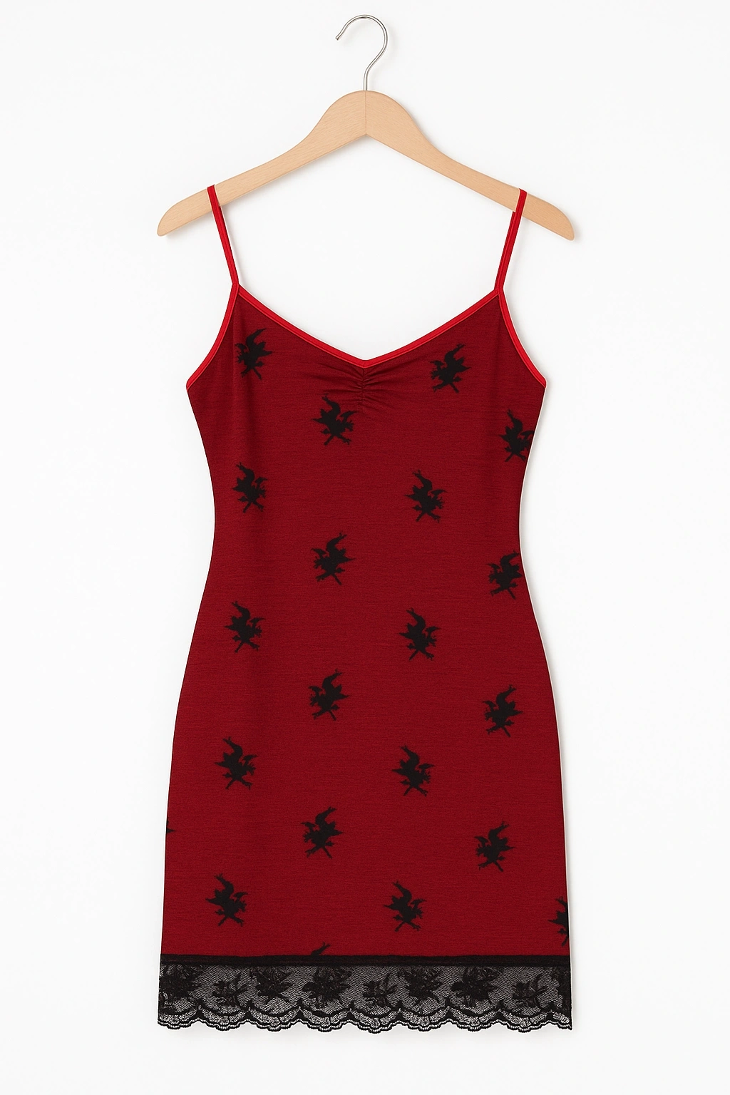 Kadın Kırmızı Saten Askılı Dantel Detaylı Gecelik 2227