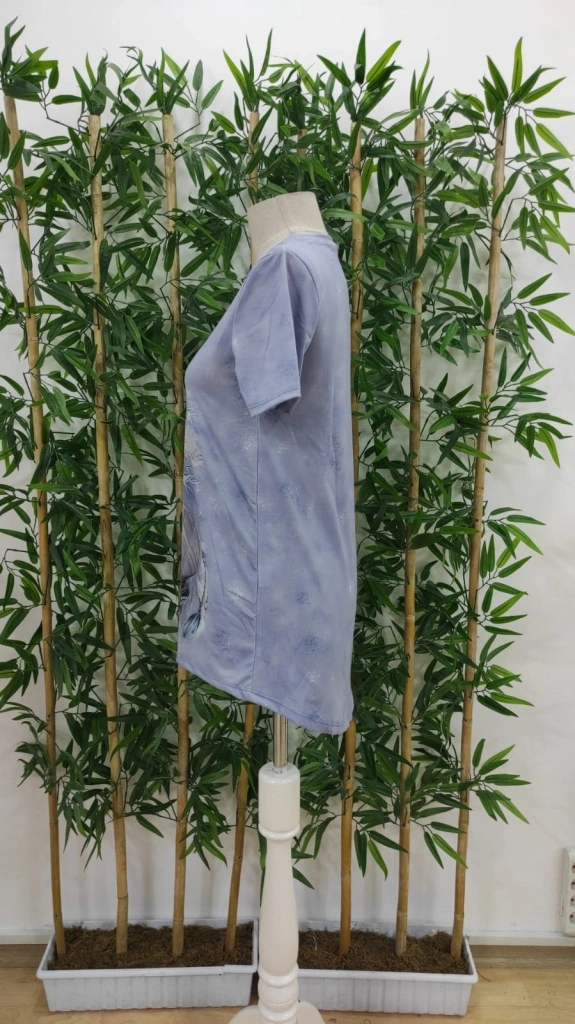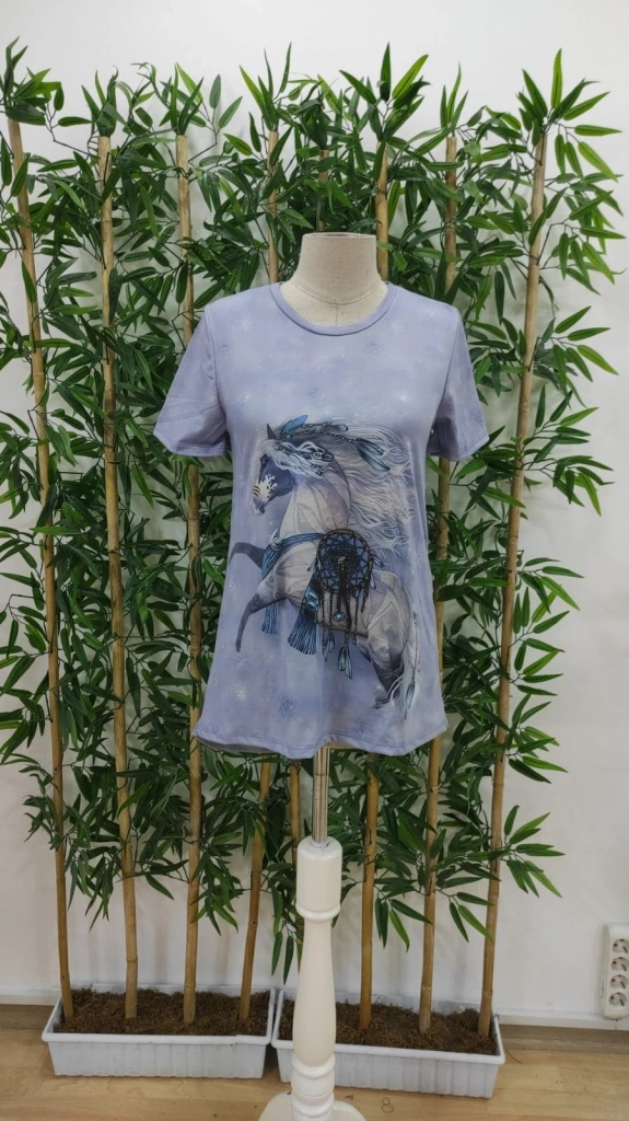 Kadın Kısa Kollu Bisiklet Yaka Mitolojik At Figür Baskılı Salaş Süprem Bluz