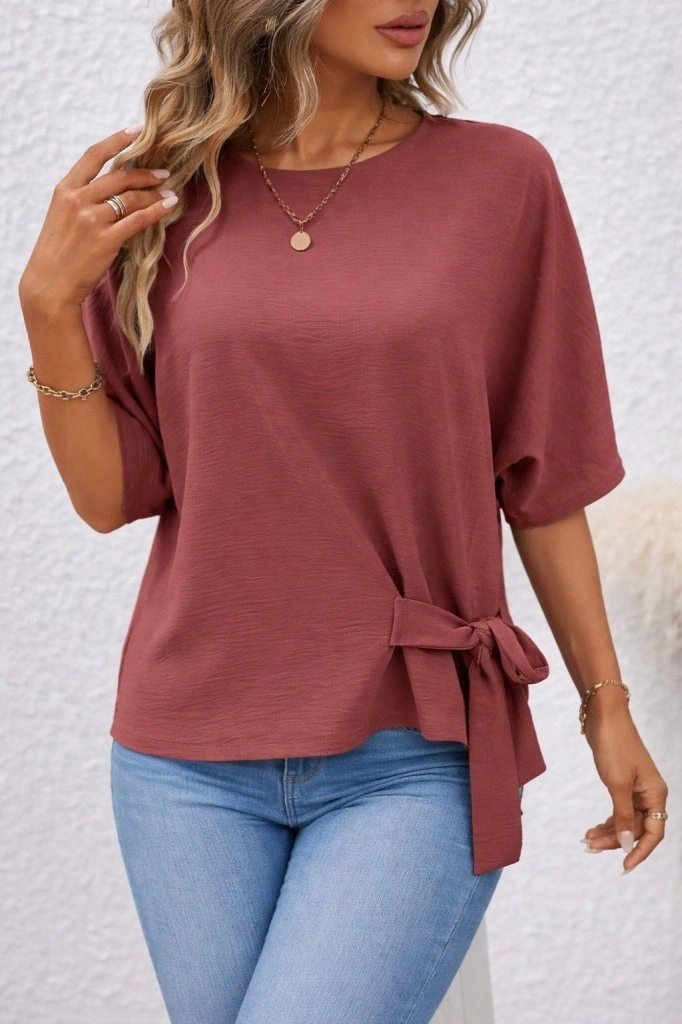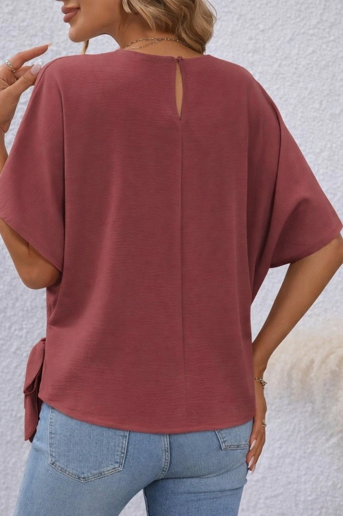 Kadın Kısa Kollu Bisiklet Yaka Yandan Bağcıklı Aerobin Bluz