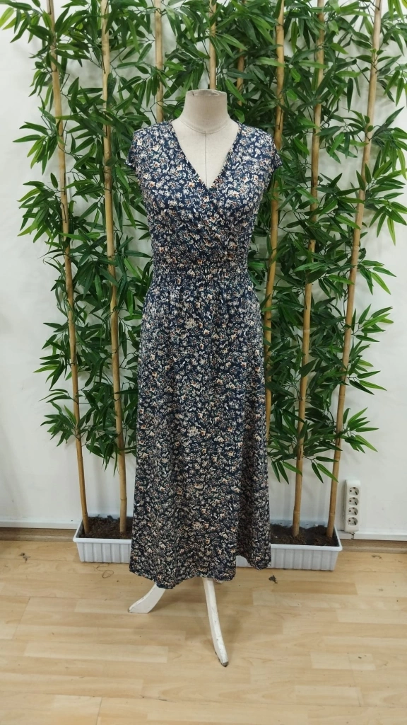Kadın Kısa Kollu Kruvaze Yakalı çiçek Desenli Belden Lastikli Süprem Uzun Elbise