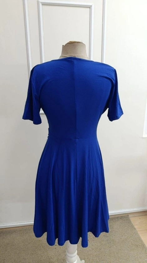 Kadın Kısa Kollu Kruvaze Yakalı önden Toka Detaylı Kısa Viskon Elbise