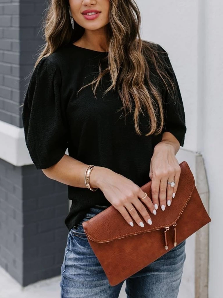 Kadın Kısa Kollu Pileli Balon Kol Bürümcük Bluz
