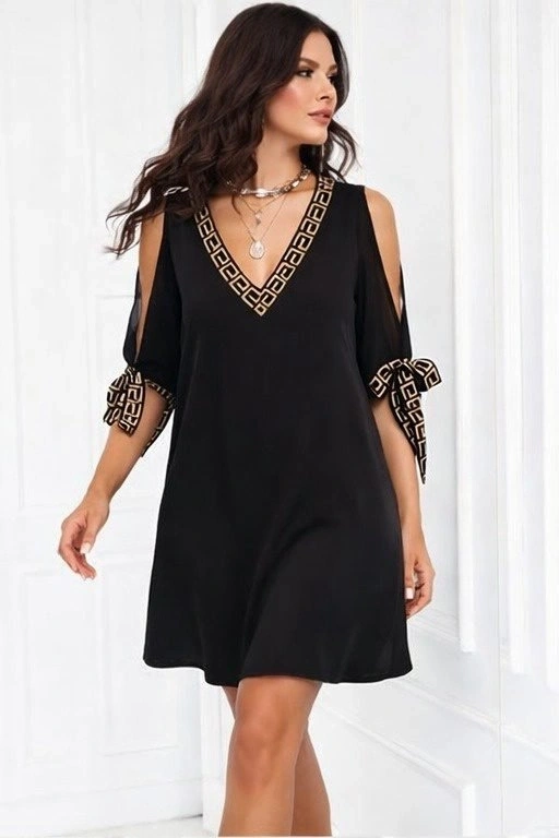 Kadın Kısa Kollu V Yakalı Kısa Sandy Elbise