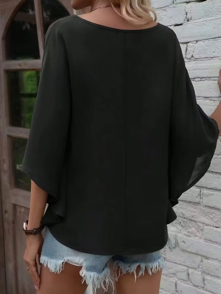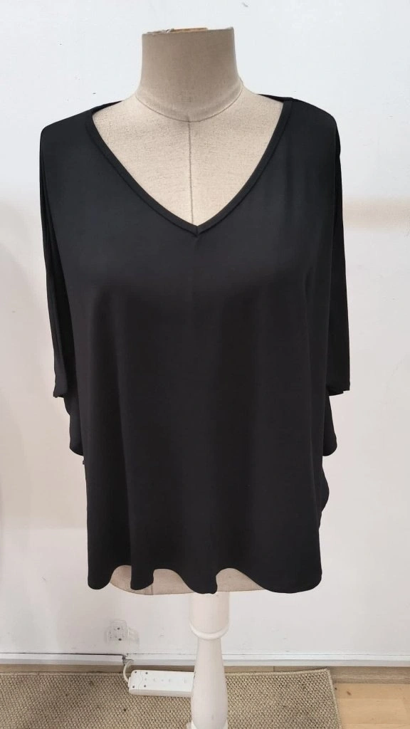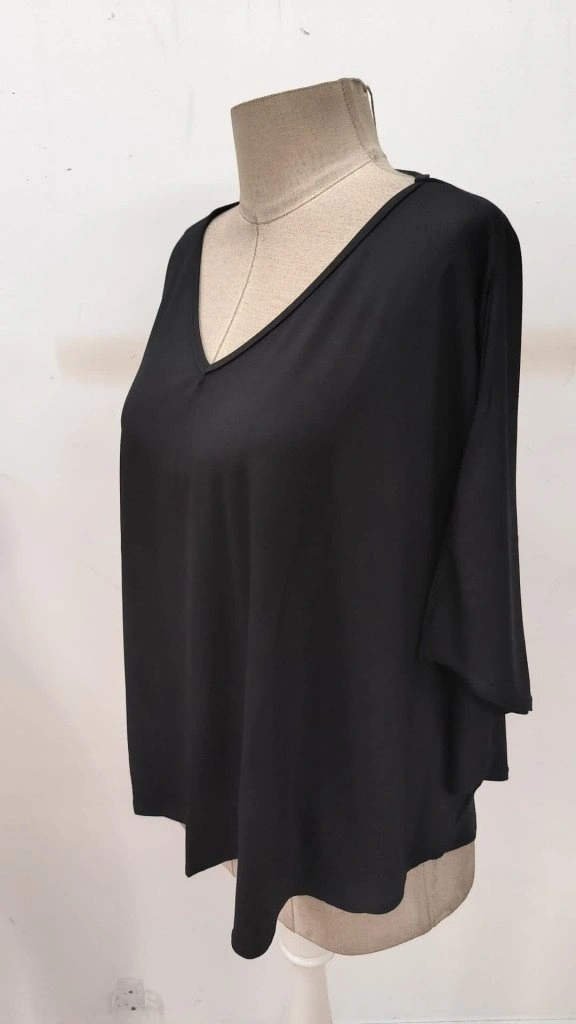 Kadın Kısa Kollu V Yakalı Salaş Viskon Bluz