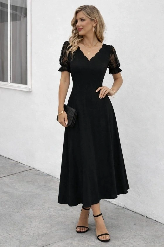 Kadın Kısa Kollu V Yakalı Uzun Janjan Elbise