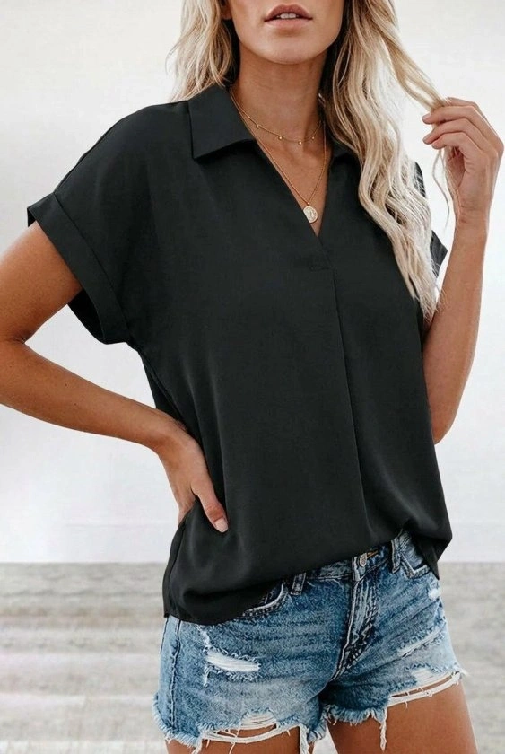 Kadın Kısa Kollu Yakalı Dokuma Viskon Bluz