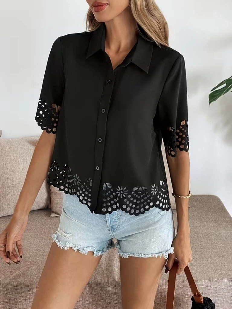Kadın Kısa Kollu Yakalı önden Düğmeli Dubai Gömlek Bluz