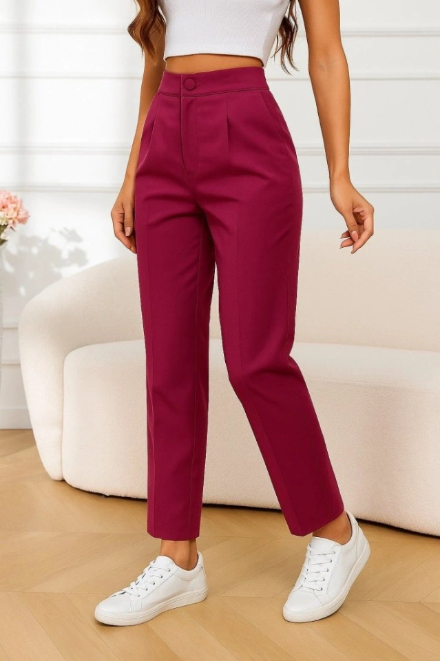 Kadın önden Fermuarlı Cepli Geniş Kesim Lame Deri Pantolon