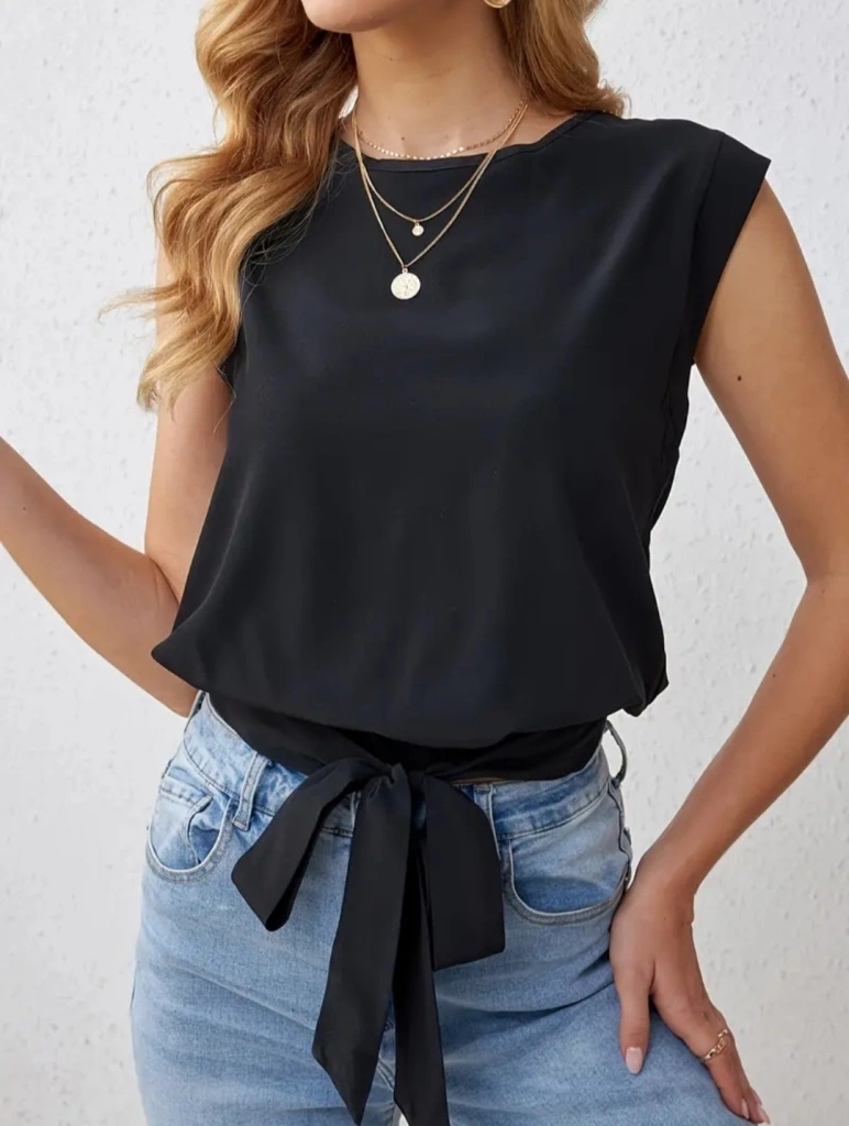 Kadın Sıfır Kol Etek Ucu Bağlama Detay Ithal Krep Bluz