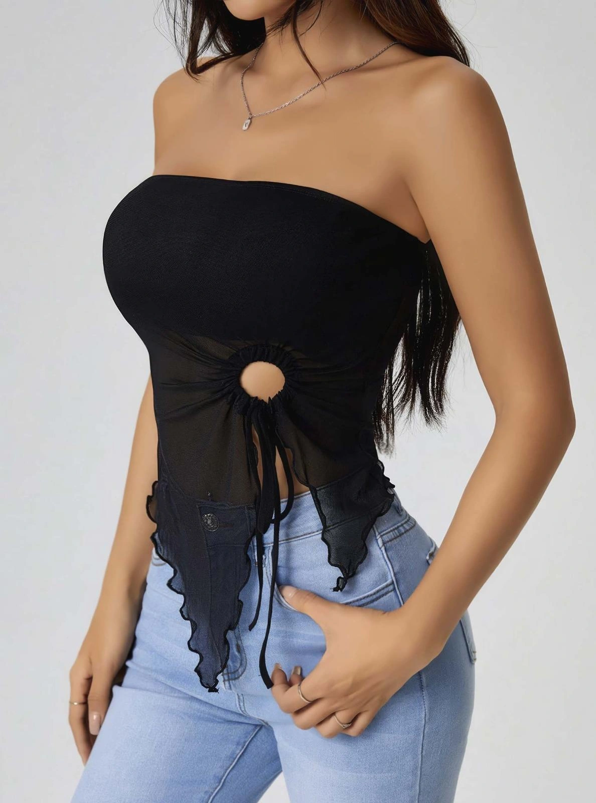 Kadın Siyah Crop Önden Halka Büzgü detaylı 5094