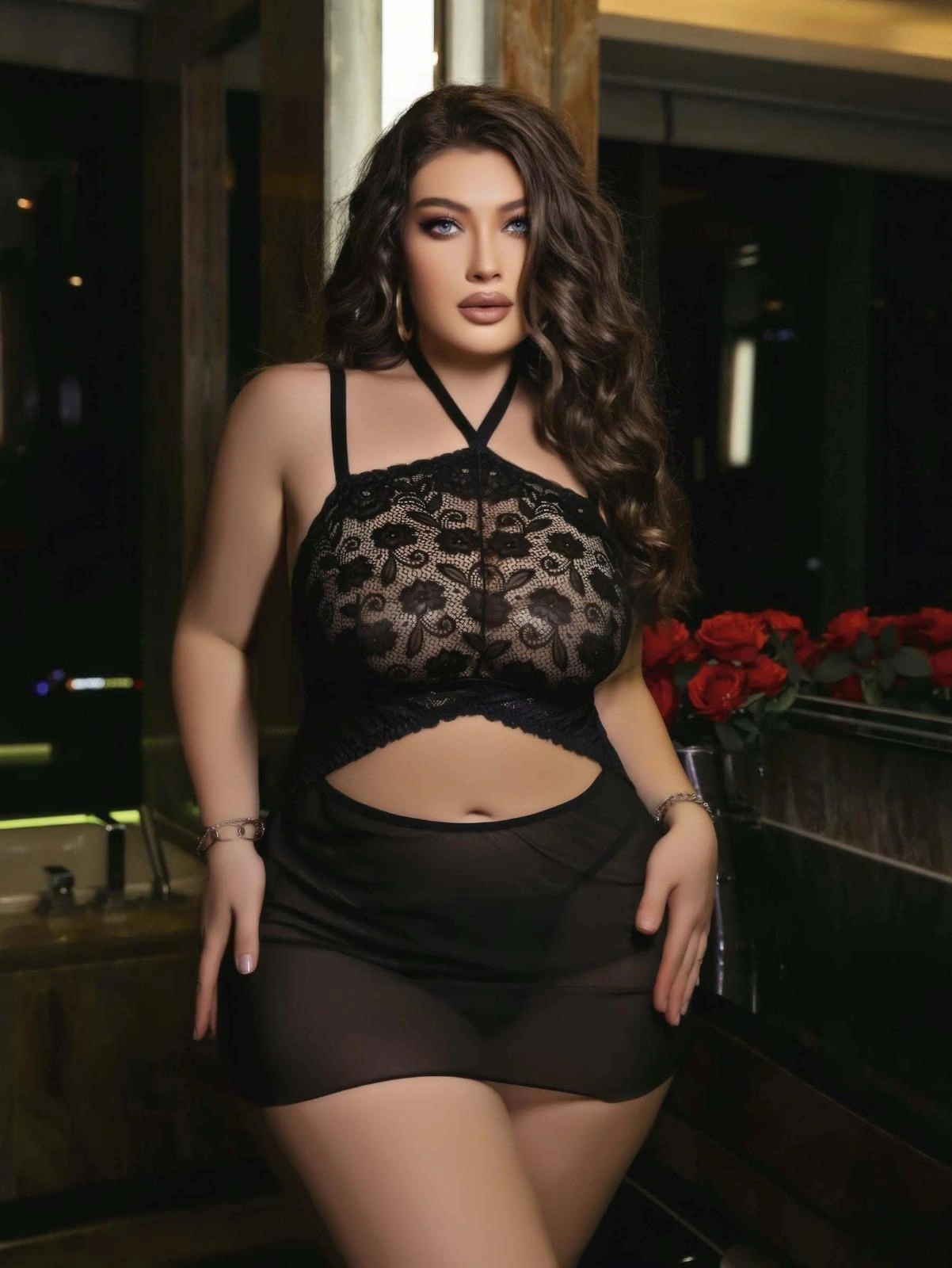 Transparan Siyah Büyük Beden Kısa Tül Gecelik TM1304