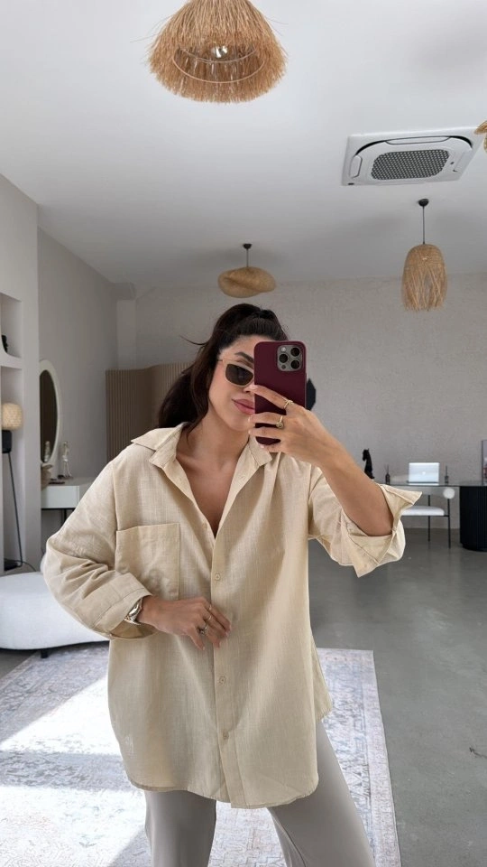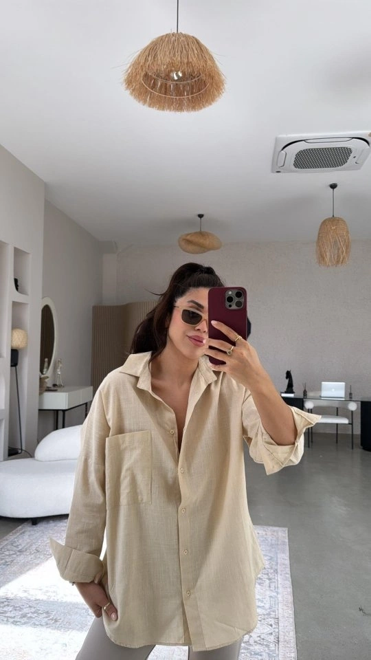 Kadın Tek Cepli Over Size Ketem Gömlek