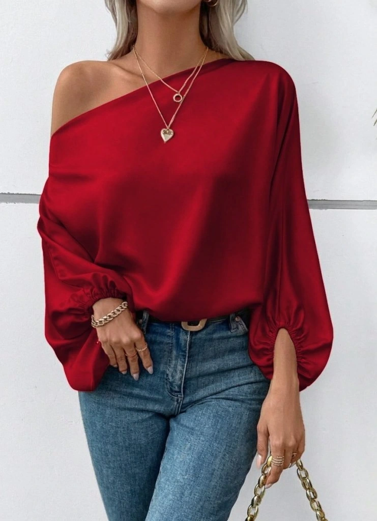 Kadın Tek Omuzu Açık Uzun Kollu Salaş Sandy Bluz