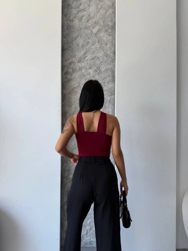 Kadın Toka Detay Halter Yaka Sandy Bluz