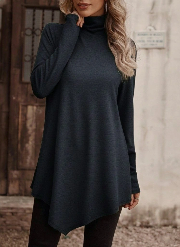 Kadın Uzun Kollu Balıkçı Yaka Asimetrik Kesim Detaylı Antrasit Yün Viskon Bluz