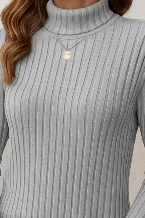 Kadın Uzun Kollu Balıkçı Yaka Yandan Yırtmaçlı şardonlu Kaşkorse Bluz