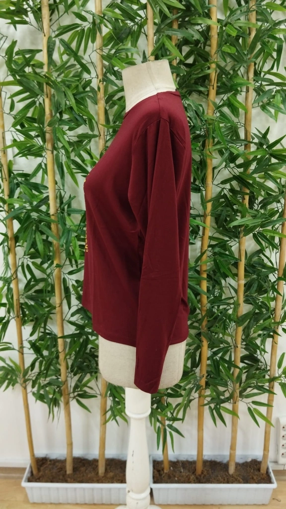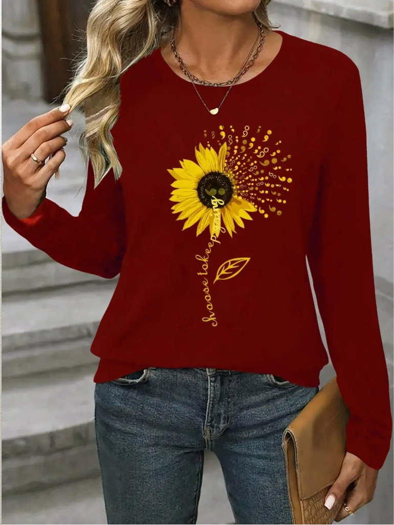 Kadın Uzun Kollu Bisiklet Yaka Ayçiçeği Desenli Viskon Bluz