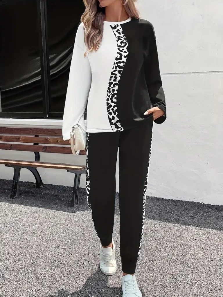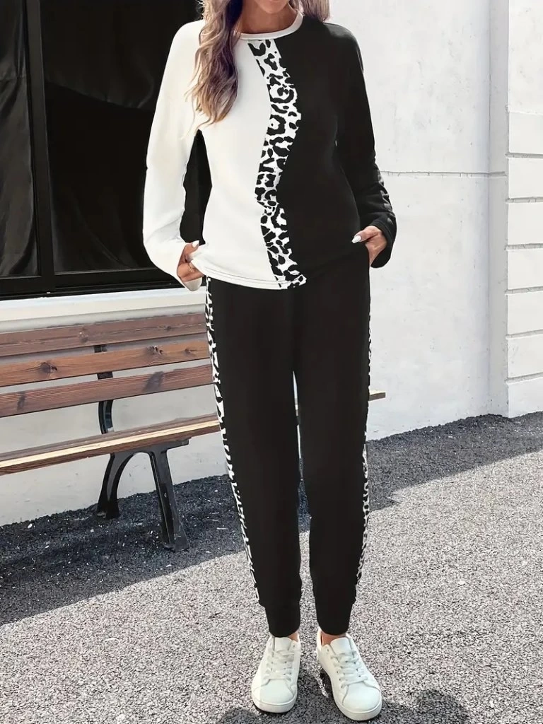 Kadın Uzun Kollu Bisiklet Yaka çift Renkli Viskon Iki Iplik Bluz Ve Pantolon Ikili Takım