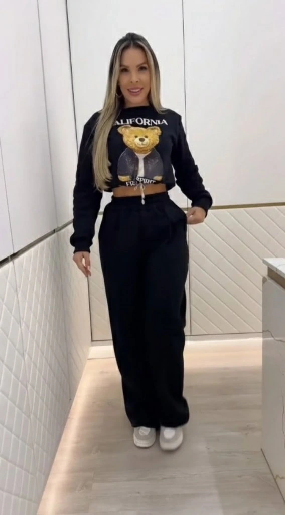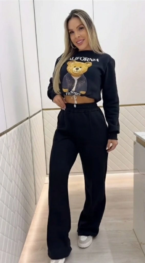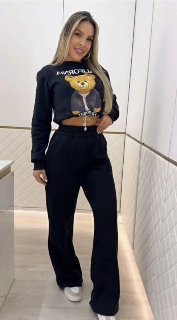 Kadın Uzun Kollu Bisiklet Yaka Desenli Iki Iplik şardonlu Bluz Ve Pantolon Ikili Takım