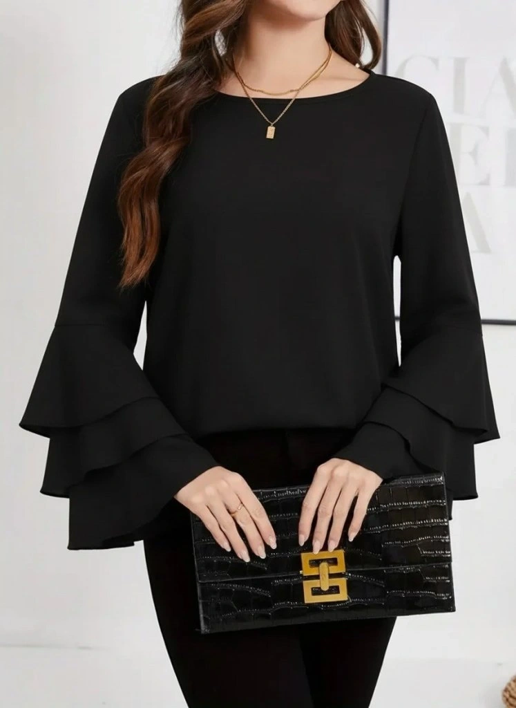 Kadın Uzun Kollu Bisiklet Yaka Kollar İspanyol Volanlı Sandy Bluz