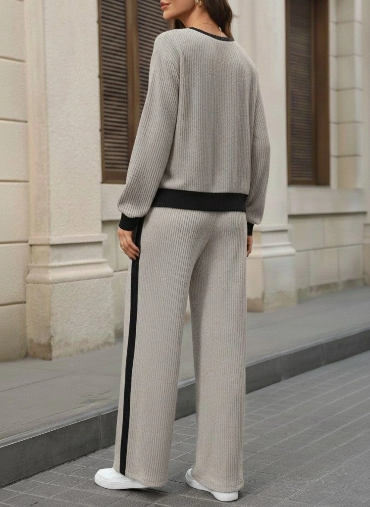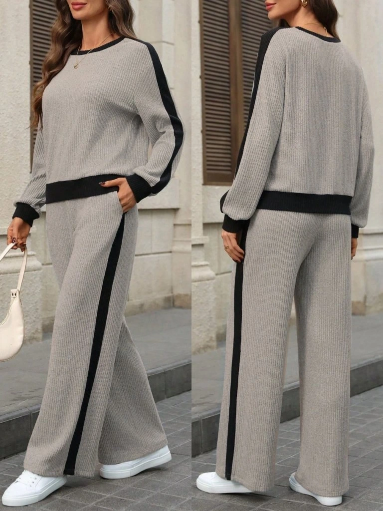 Kadın Uzun Kollu Bisiklet Yaka şardonlu Kaşkorse Bluz Ve Pantolon Ikili Takım