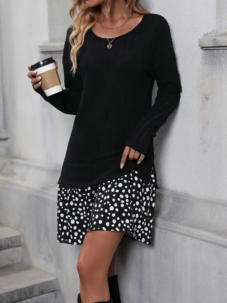 Kadın Uzun Kollu Bisiklet Yaka şardonlu Kaşkorse Bluz Ve Süprem Etek Elbise