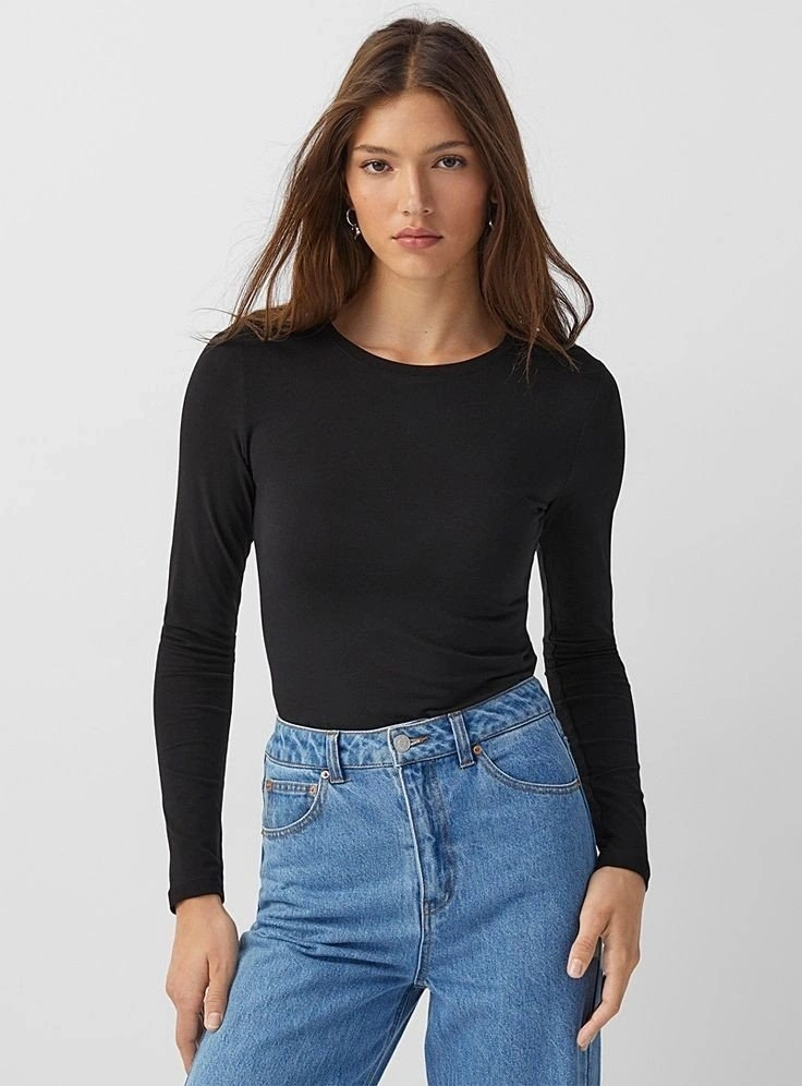 Kadın Uzun Kollu Bisiklet Yaka Süprem Bluz