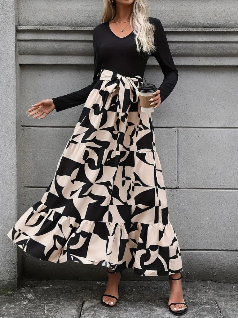 Kadın Uzun Kollu Bisiklet Yaka Uzun Elbise