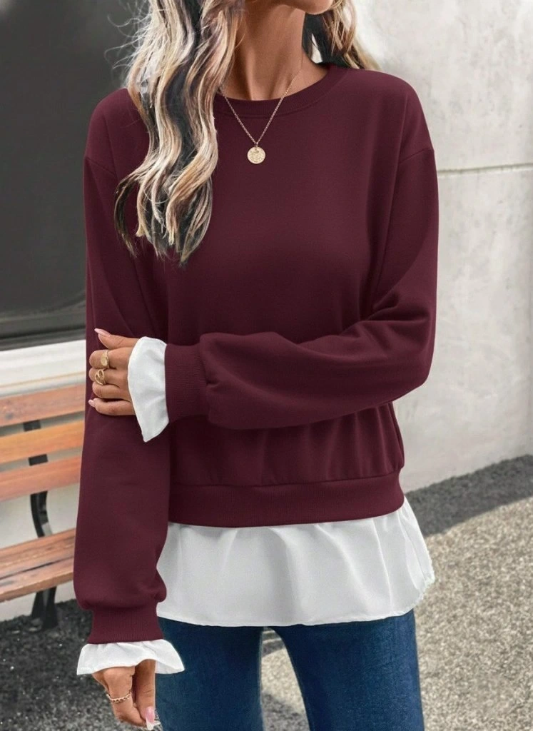 Kadın Uzun Kollu Bisiklet Yaka Viskon Iki Iplik Ve Etek Ucu Trikoton Bluz