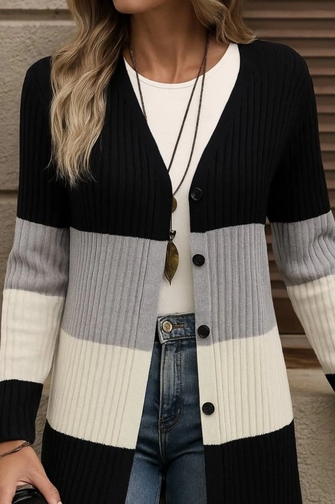 Kadın Uzun Kollu çok Renkli önden Düğmeli Uzun Ceket