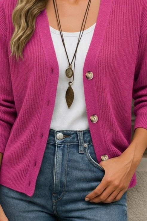 Kadın Uzun Kollu Düğme Detay Triko Bluz