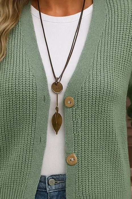 Kadın Uzun Kollu Düğme Detay Triko Bluz