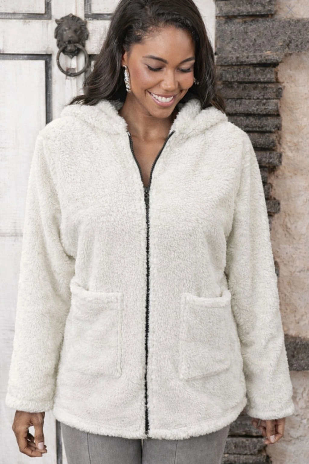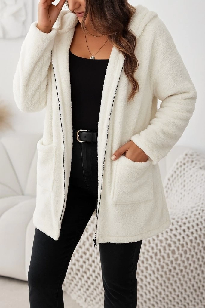 Kadın Uzun Kollu Kapşonlu önden Fermuarlı Cepli Welsoft Ceket