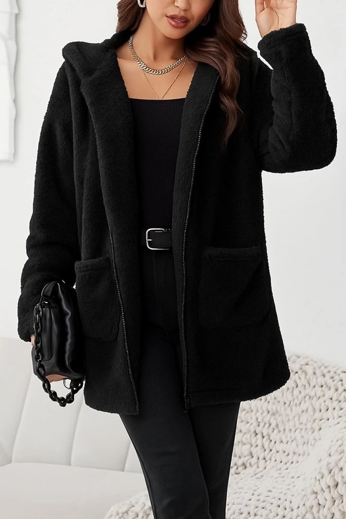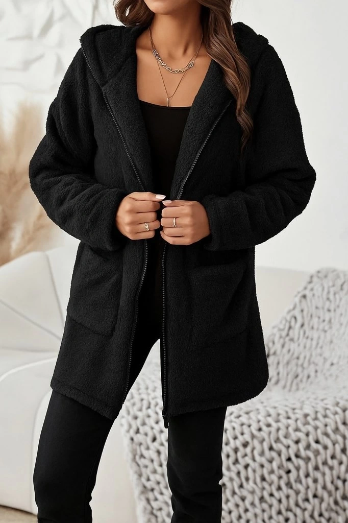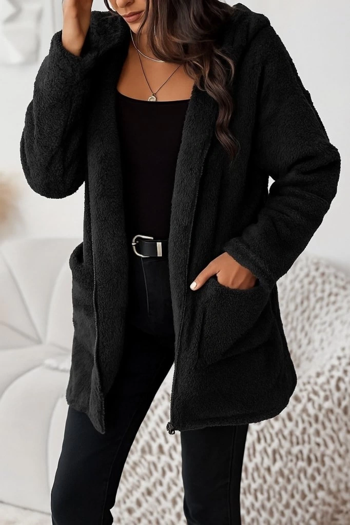 Kadın Uzun Kollu Kapşonlu önden Fermuarlı Cepli Welsoft Ceket