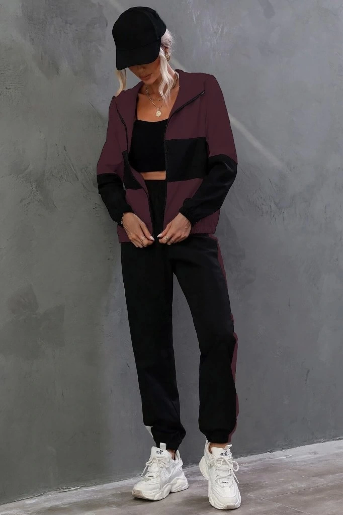 Kadın Uzun Kollu Kapşonlu önden Fermuarlı Viskon Iki Iplik Bluz Ve Pantolon Ikili Takım