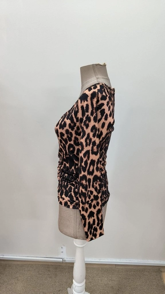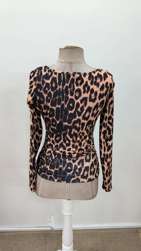 Kadın Uzun Kollu Kare Yakalı Leopar Desenli Dalgıç Bluz