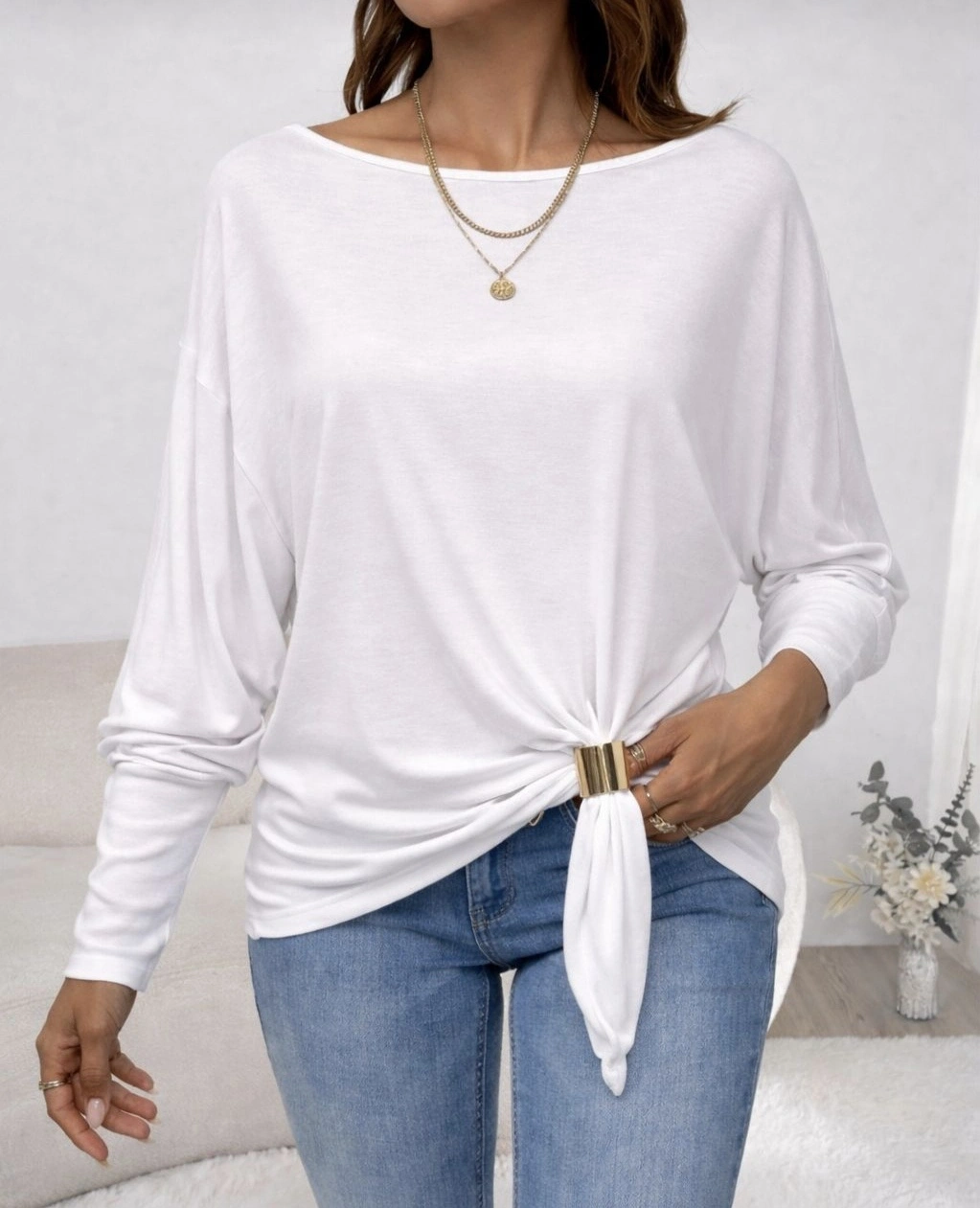 Kadın Uzun Kollu Kayık Yaka Manşet Ve Toka Detay Bluz