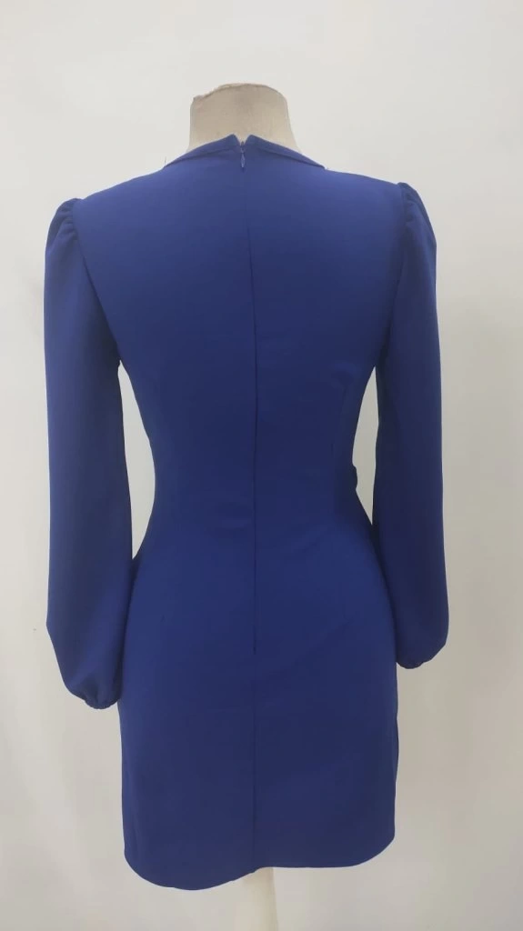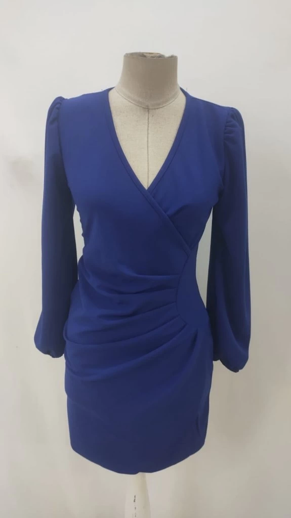 Kadın Uzun Kollu Kruvaze Yakalı Yanlardan Büzgü Detaylı Ithal Krep Kısa Elbise