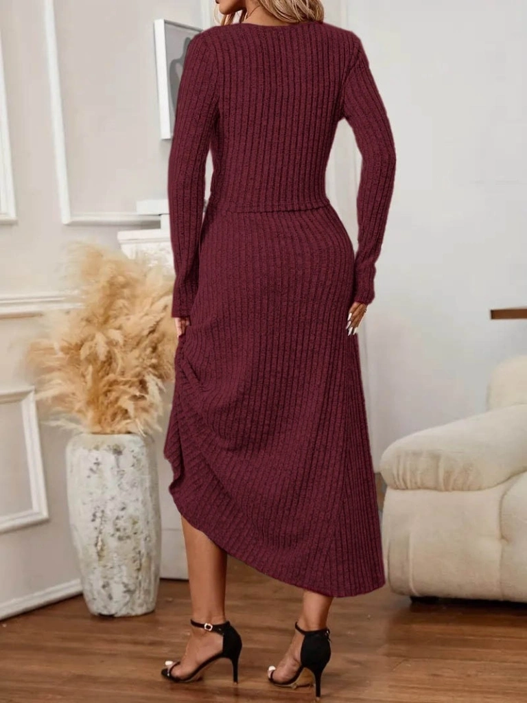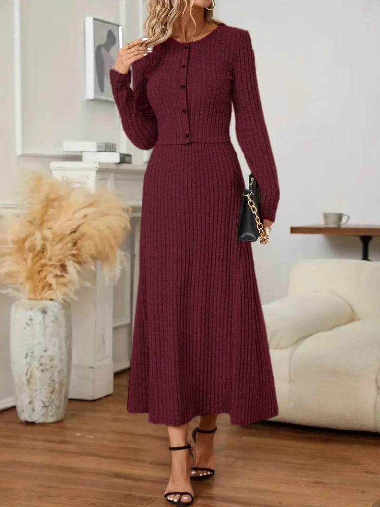 Kadın Uzun Kollu önden Düğmeli Bluz Ve Yüksek Bel A Kesim Uzun Etek şardonlu Kaşkorse Ikili Takım
