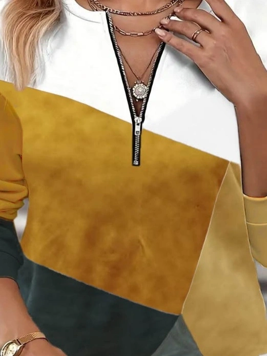 Kadın Uzun Kollu önden Fermuar Detaylı Desenli şardonlu Dalgıç Bluz