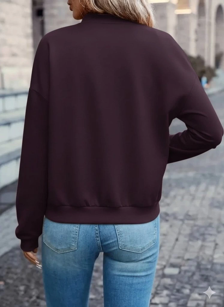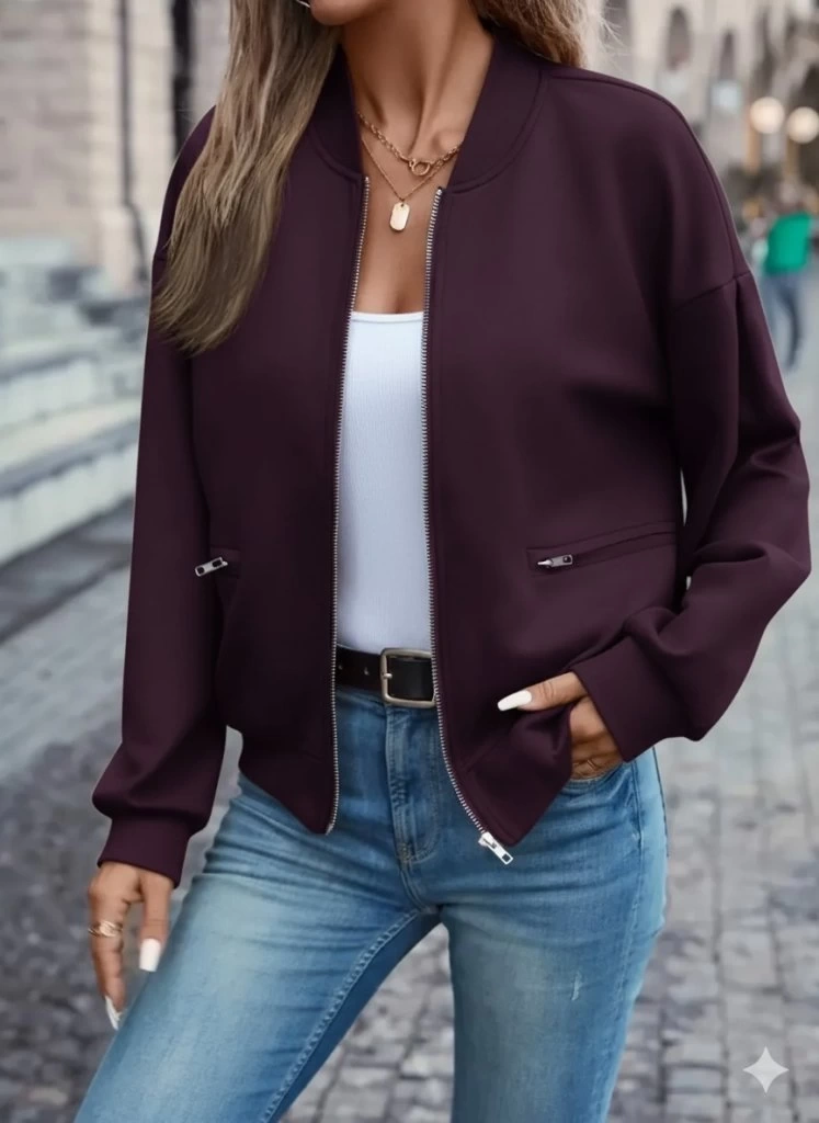 Kadın Uzun Kollu önden Fermuarlı Cepli Modal Mürdüm Ceket