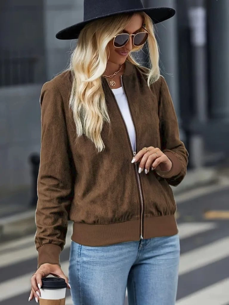 Kadın Uzun Kollu önden Fermuarlı Süet Ceket