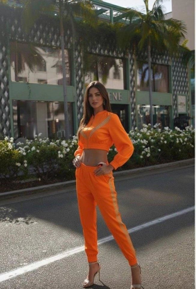 Kadın Uzun Kollu önü şerit Detay Kısa Ceket Ve Pantolon Ikili Takım