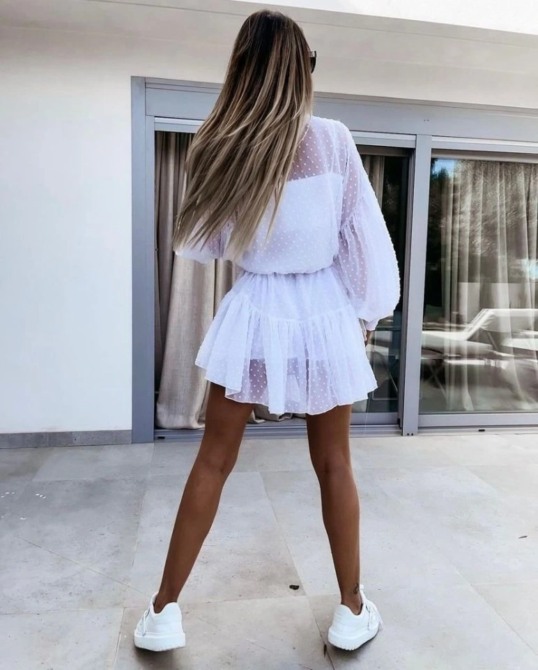 Kadın Uzun Kollu Puantiye Detay Gömlek Elbise