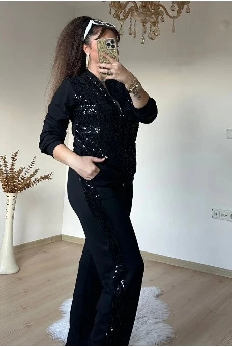 Kadın Uzun Kollu Pul Payet Detay Fermuarlı Iki Iplik Kumaş Ikili Takım