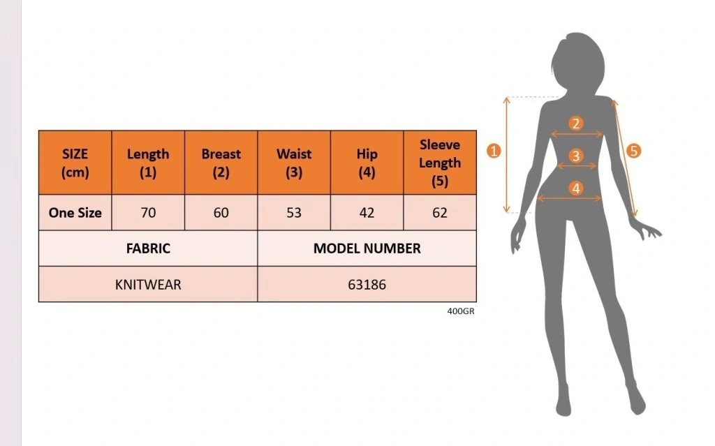 Modelin Ölçüleri: Boy:165, Kg:55, Göğüs:90, Bel:72, Kalça: 100