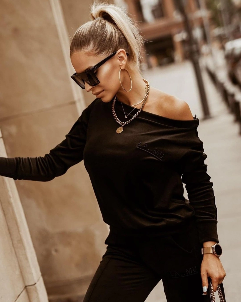 Kadın Uzun Kollu Tek Omuzu Açık Kadife Takım