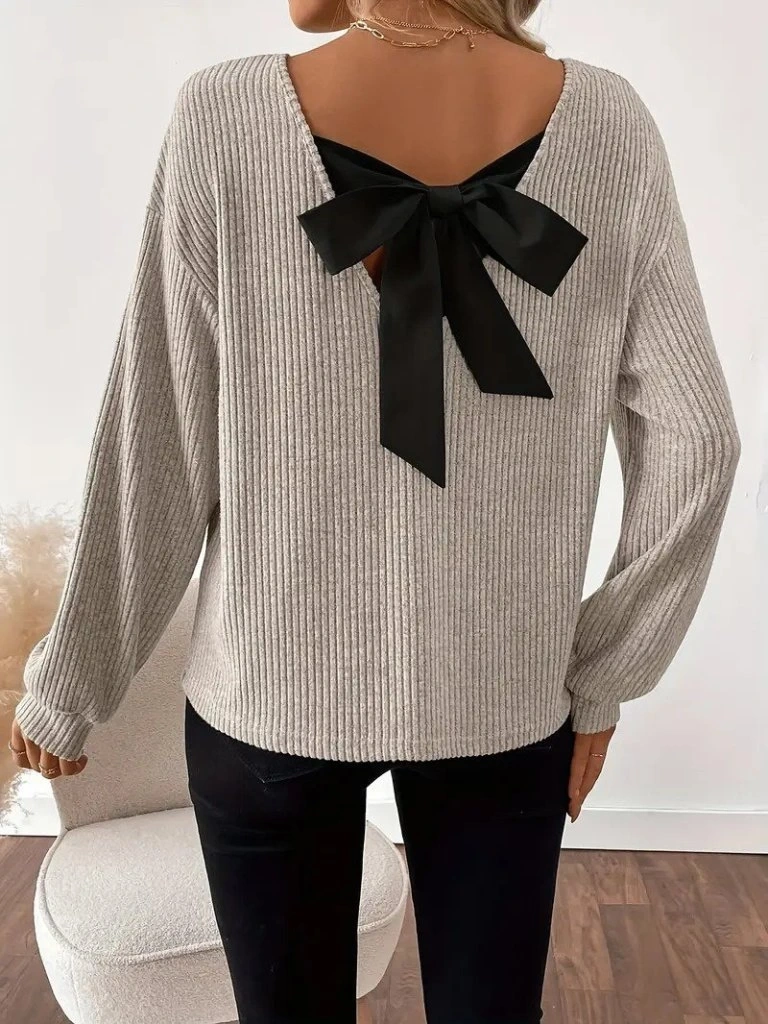 Kadın Uzun Kollu V Yakalı Arkadan Kurdela Detaylı şardonlu Kaşkorse Bluz