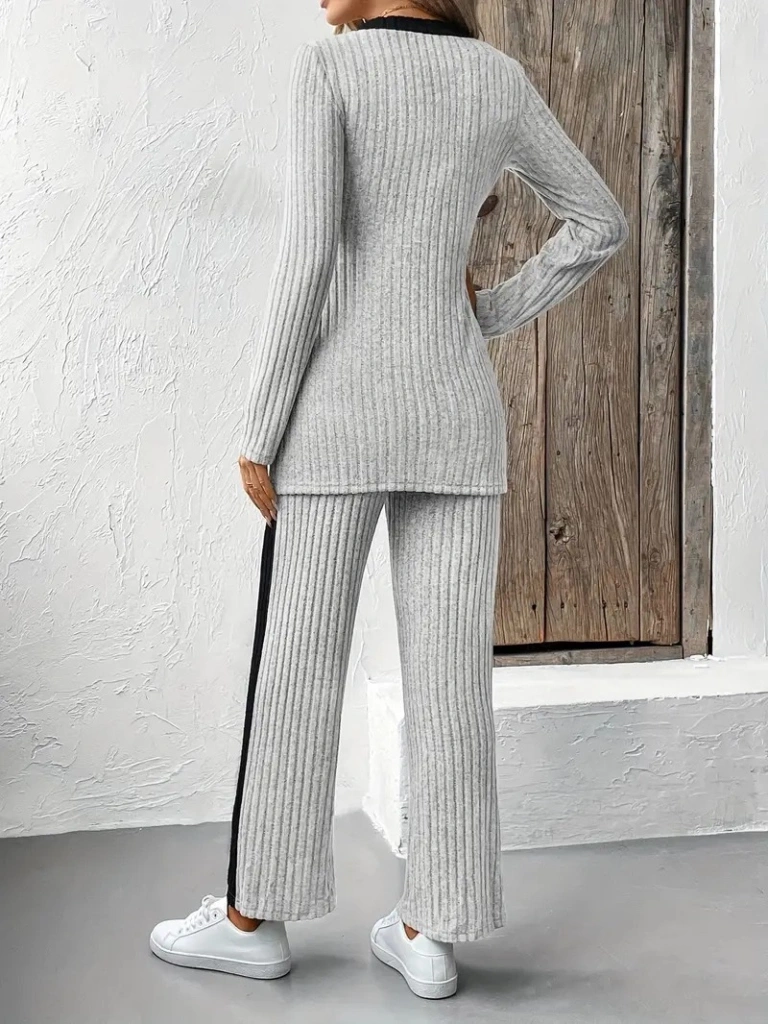 Kadın Uzun Kollu V Yakalı çapraz Detaylı şardonlu Kaşkorse Bluz Ve Pantolon Ikili Takım