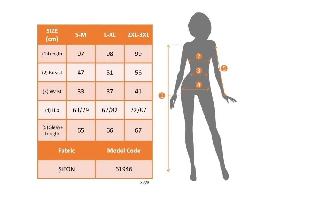 Modelin Ölçüleri: Boy:165, Kg:55, Göğüs:90, Bel:72, Kalça: 100
